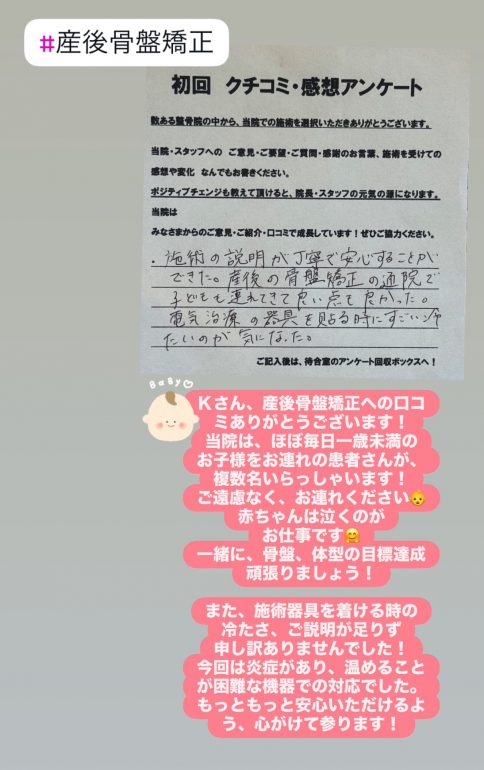 Kさん、産後骨盤矯正への口コミありがとうございます!