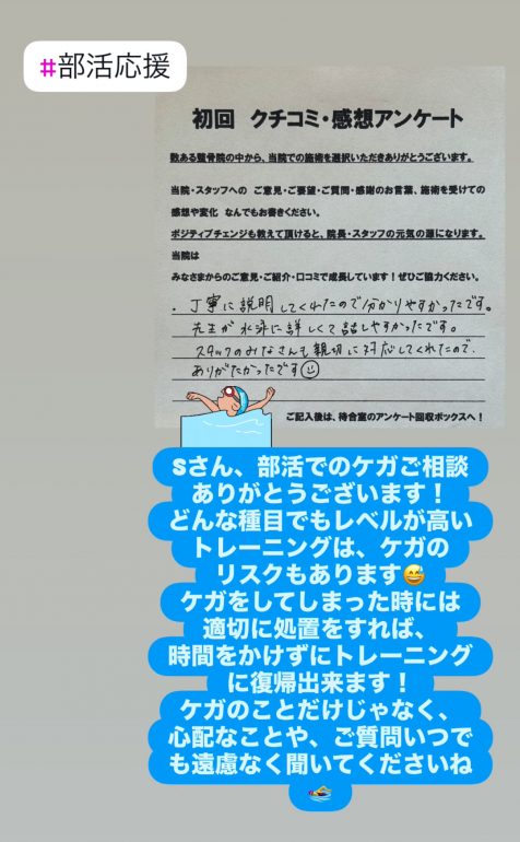 ケガのことだけじゃなく、心配なことや、ご質問いつでも遠慮なく聞いてくださいね🏊♀️