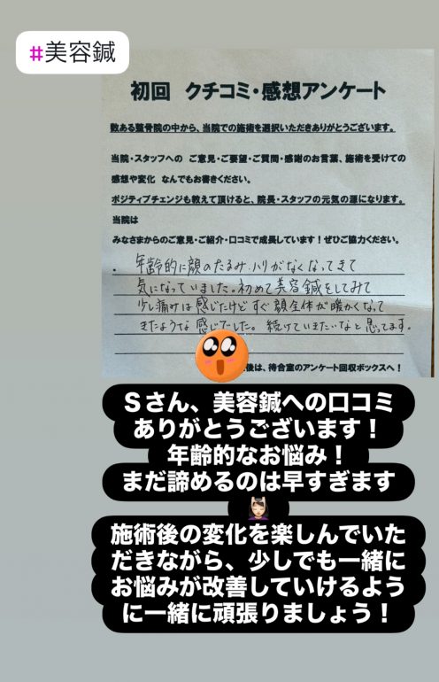 Sさん、美容鍼への口コミありがとうございます!