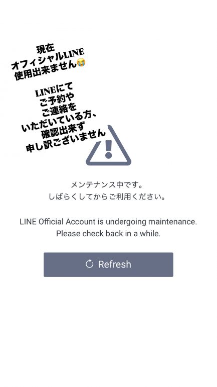 オフィシャルLINEが、本日午後より不具合によりメンテナンス中になっております!