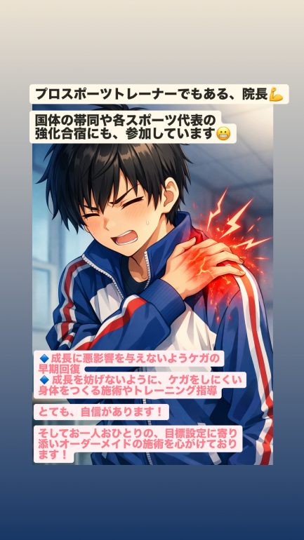 🔹 成長を妨げないように、ケガをしにくい身体をつくる施術やトレーニング指導